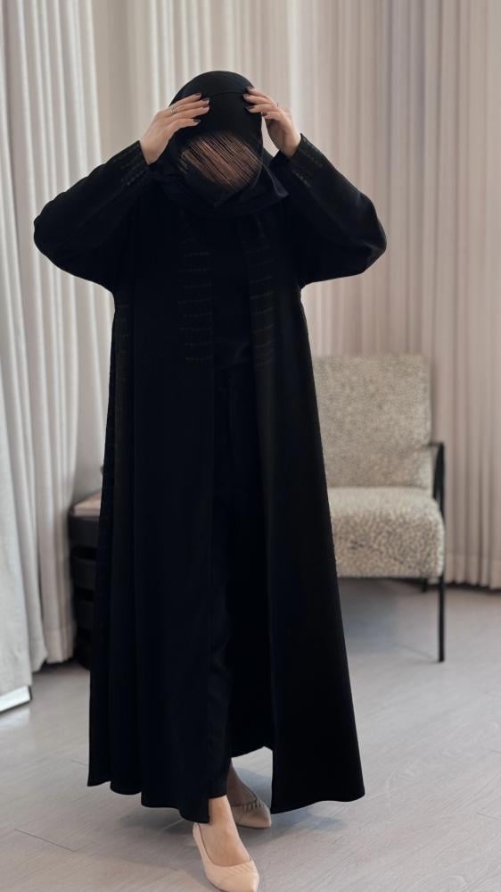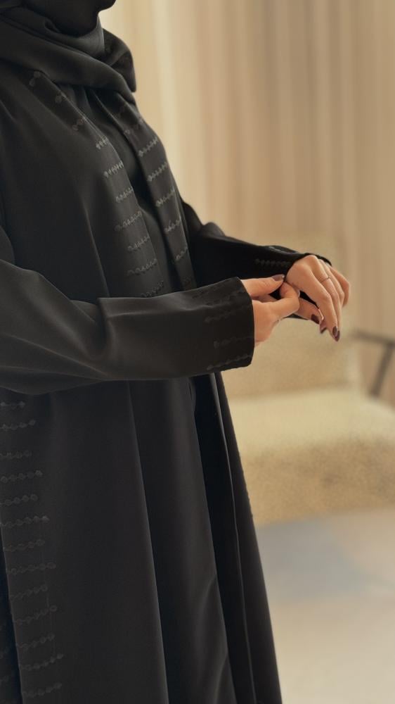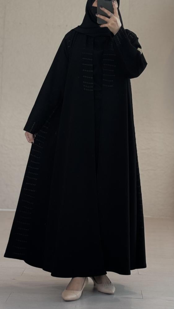 كريب ملكي سواد فاحم نص كلوش بكسره وتطريز