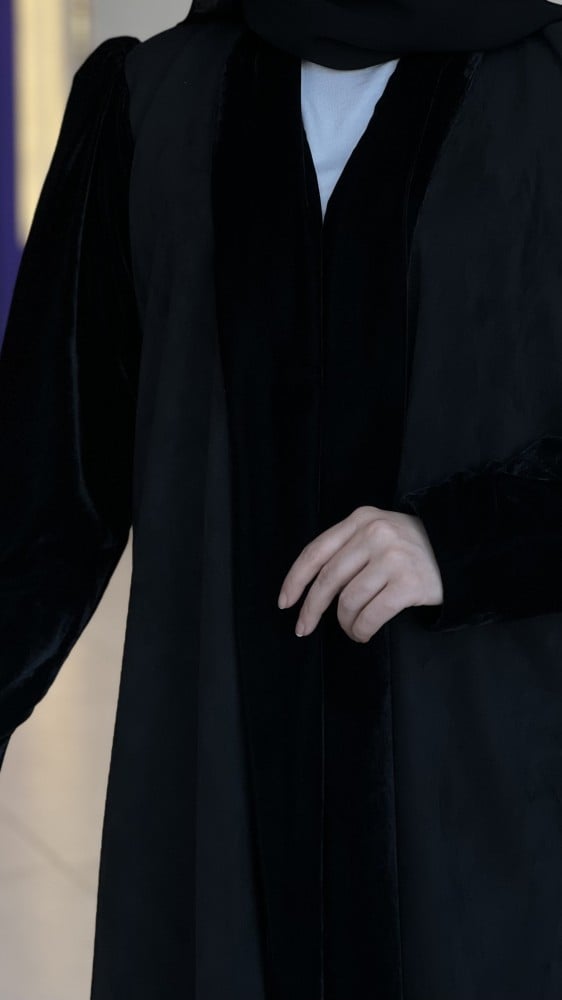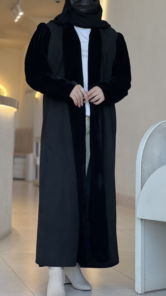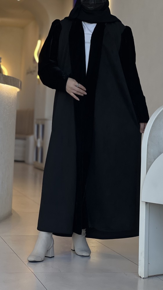 شموه مع اكمام والياقه مخمل الكم بف كسرات خفيفه