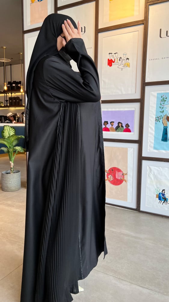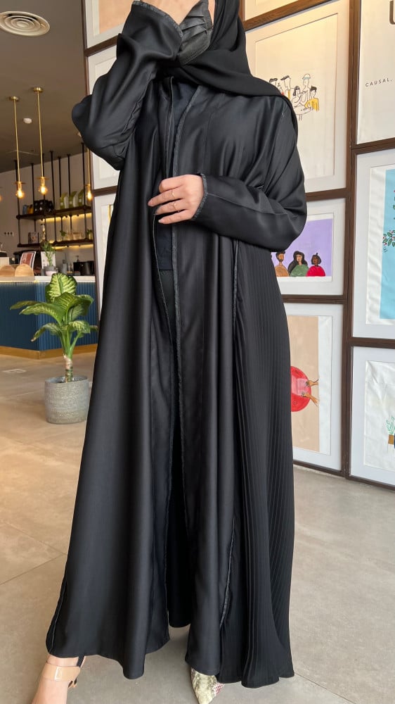 عباية كريب اسود مع كسرات ليزر